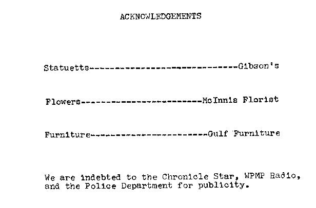 Here we have the four pages of the playbill from the junior play. Of course, not everyone in the class was in the play, but it happens to be one of the things I happened to pack up each and every time I moved. As a result, you get to see it, whether you want to or not. If you have something you'd like shown, let me know and I'll do my best. Until then, look at this. The senior play, as you may recall was "Ten Little Indians", whose playbill was not nearly as colorful and attractive. Like other thumbnail photos, just click on the small photo to view the large detailed picture.